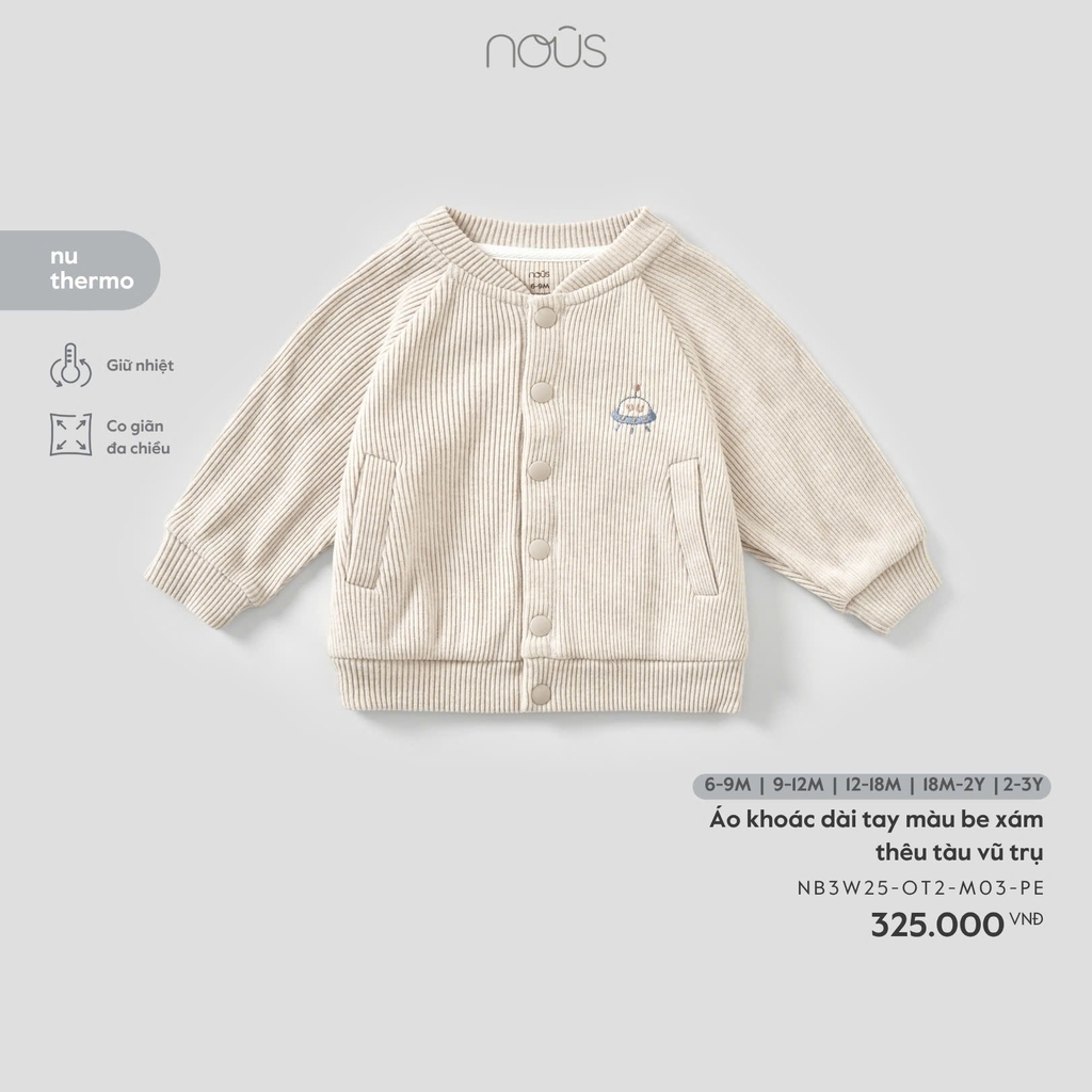 Áo khoác dài tay màu be xám thêu tàu vũ trụ