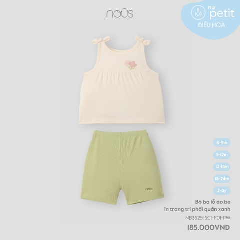 Bộ ba lỗ áo be in trang trí phối quần xanh