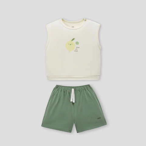 Bộ ba lỗ áo be quần xanh in quả chanh