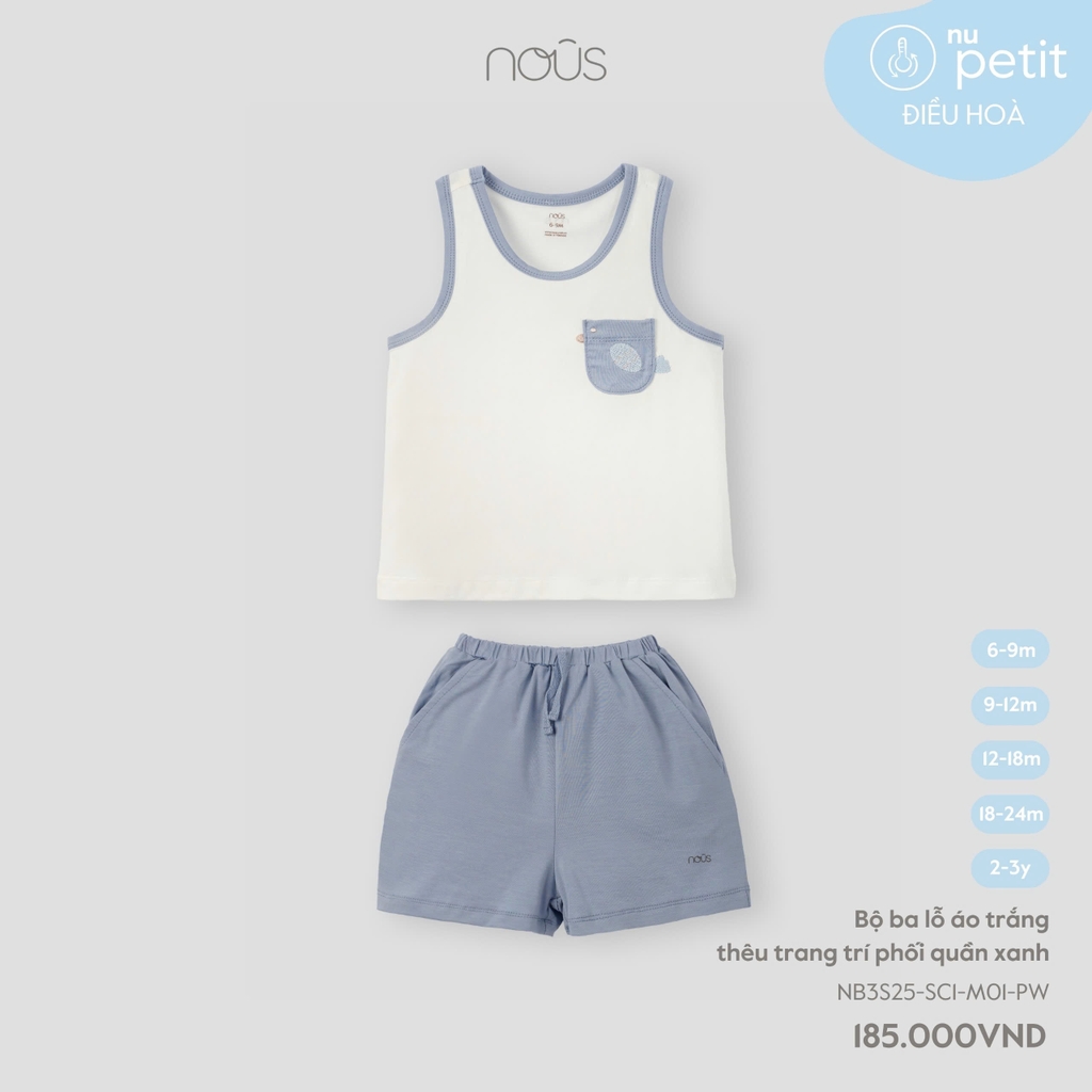 Bộ ba lỗ áo trắng thêu trang trí phối quần xanh