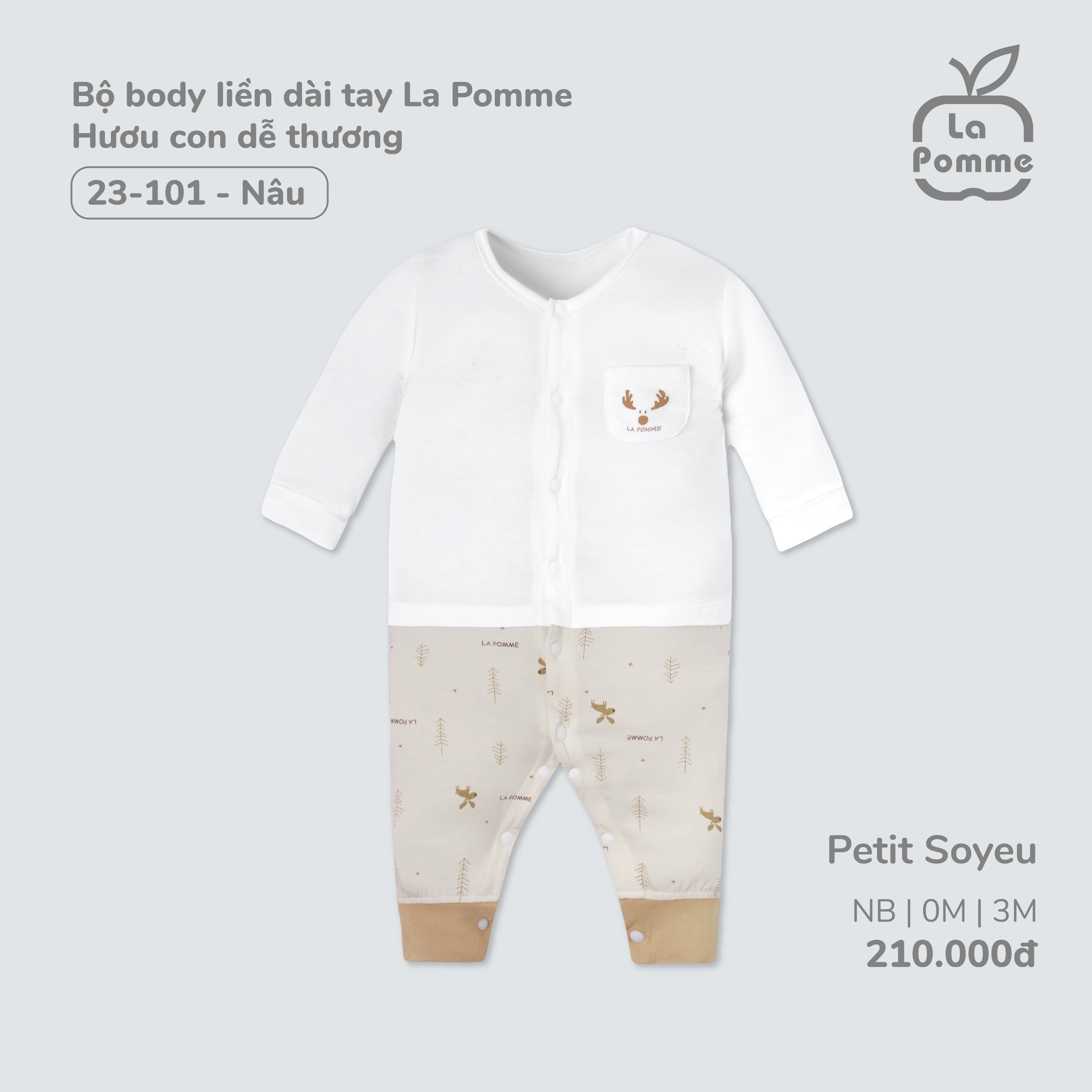 Bộ Body Liền Dài Tay La Pomme Hươu Con Dễ Thương 23101