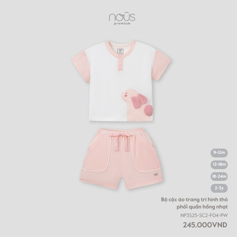 Bộ cộc áo trang trí hình thỏ phối quần hồng nhạt