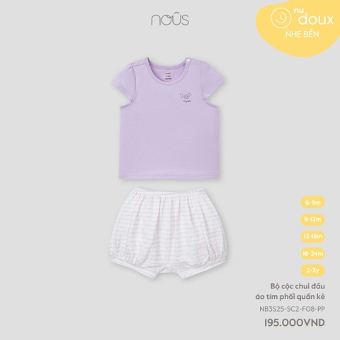 Bộ cộc chui đầu áo tím phối quần kẻ