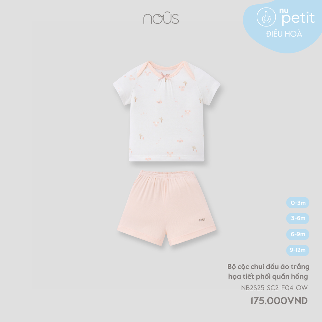 Bộ cộc chui đầu áo trắng họa tiết phối quần hồng