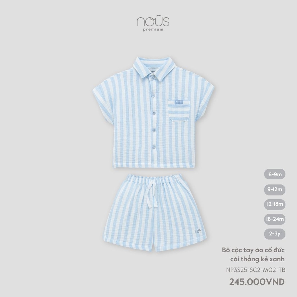 Bộ cộc tay áo cổ đức cài thẳng kẻ xanh