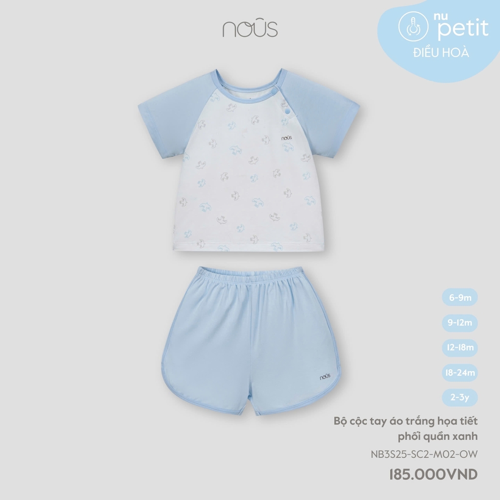 Bộ cộc tay áo trắng họa tiết phối quần xanh