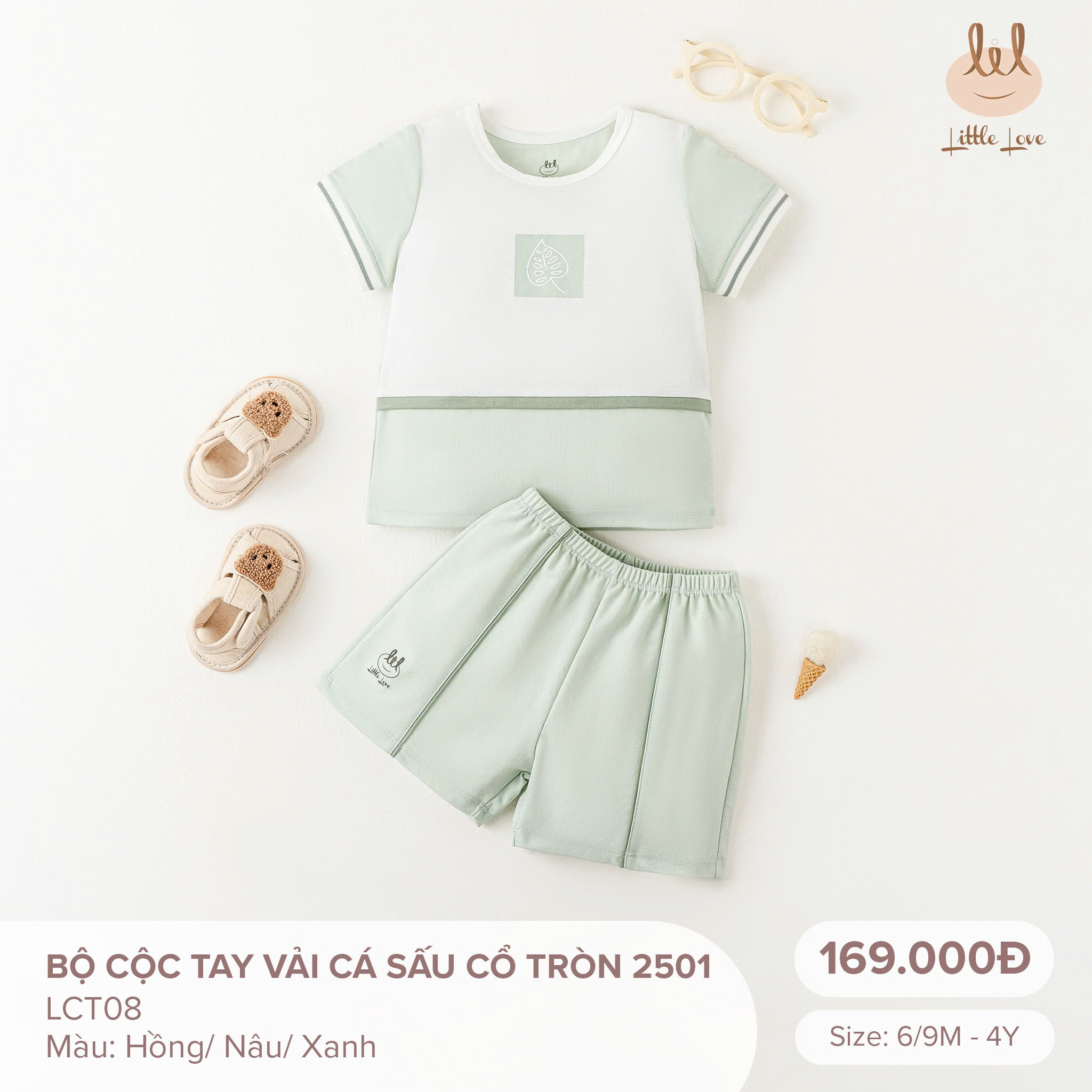 Bộ cộc tay vải cá sấu cổ tròn LCT08