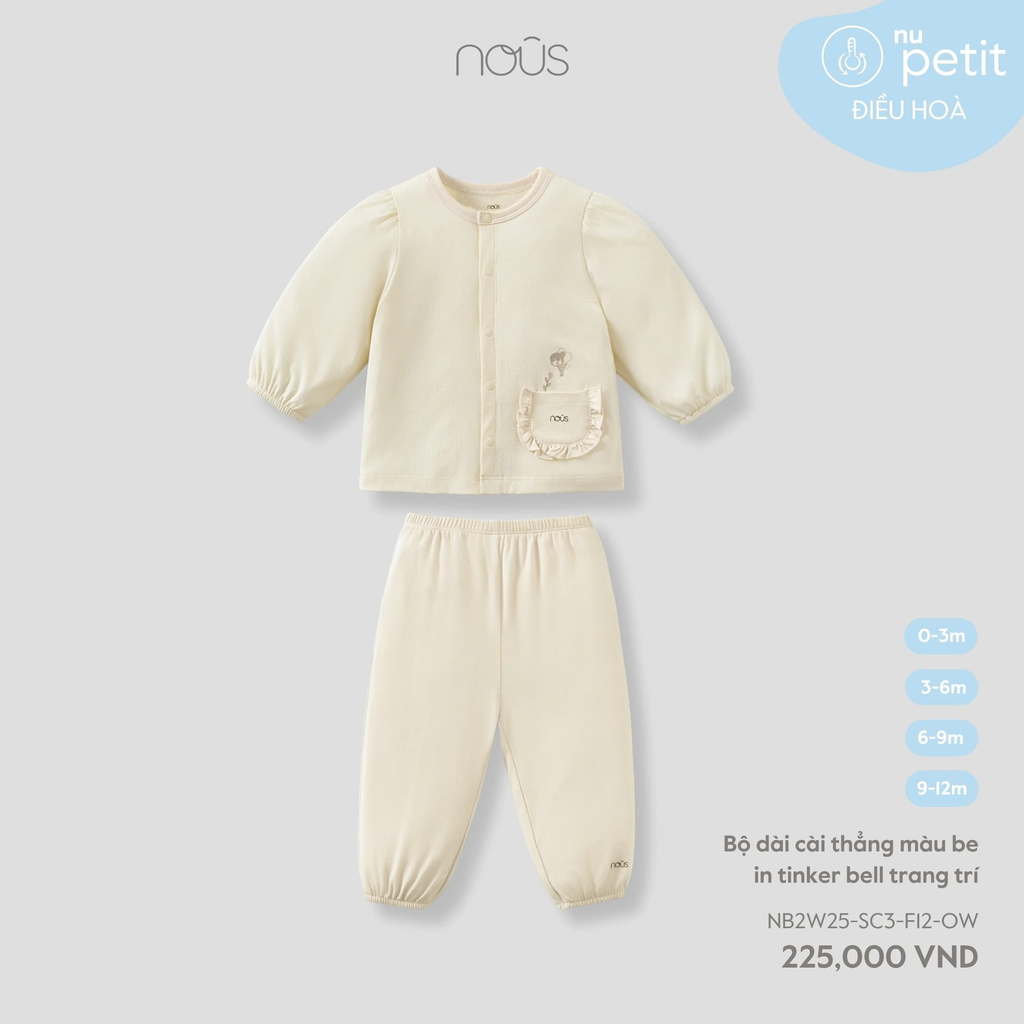 Bộ dài cài thẳng màu be in tinker bell trang trí