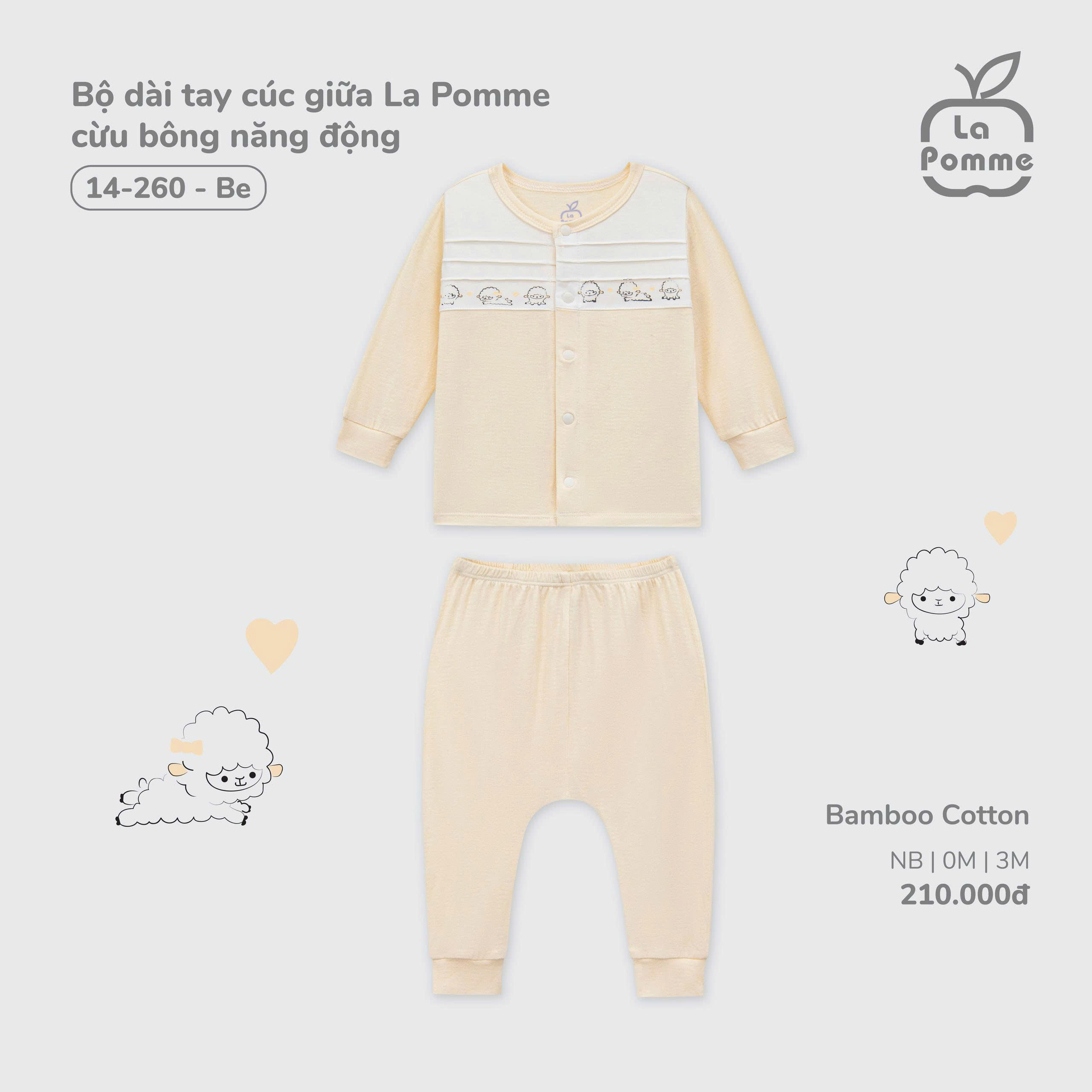 Bộ dài tay cúc giữa La Pomme cừu bông năng động