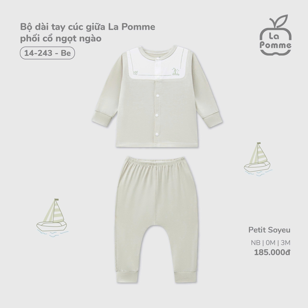 Bộ dài tay cúc giữa La Pomme phối cổ ngọt ngào