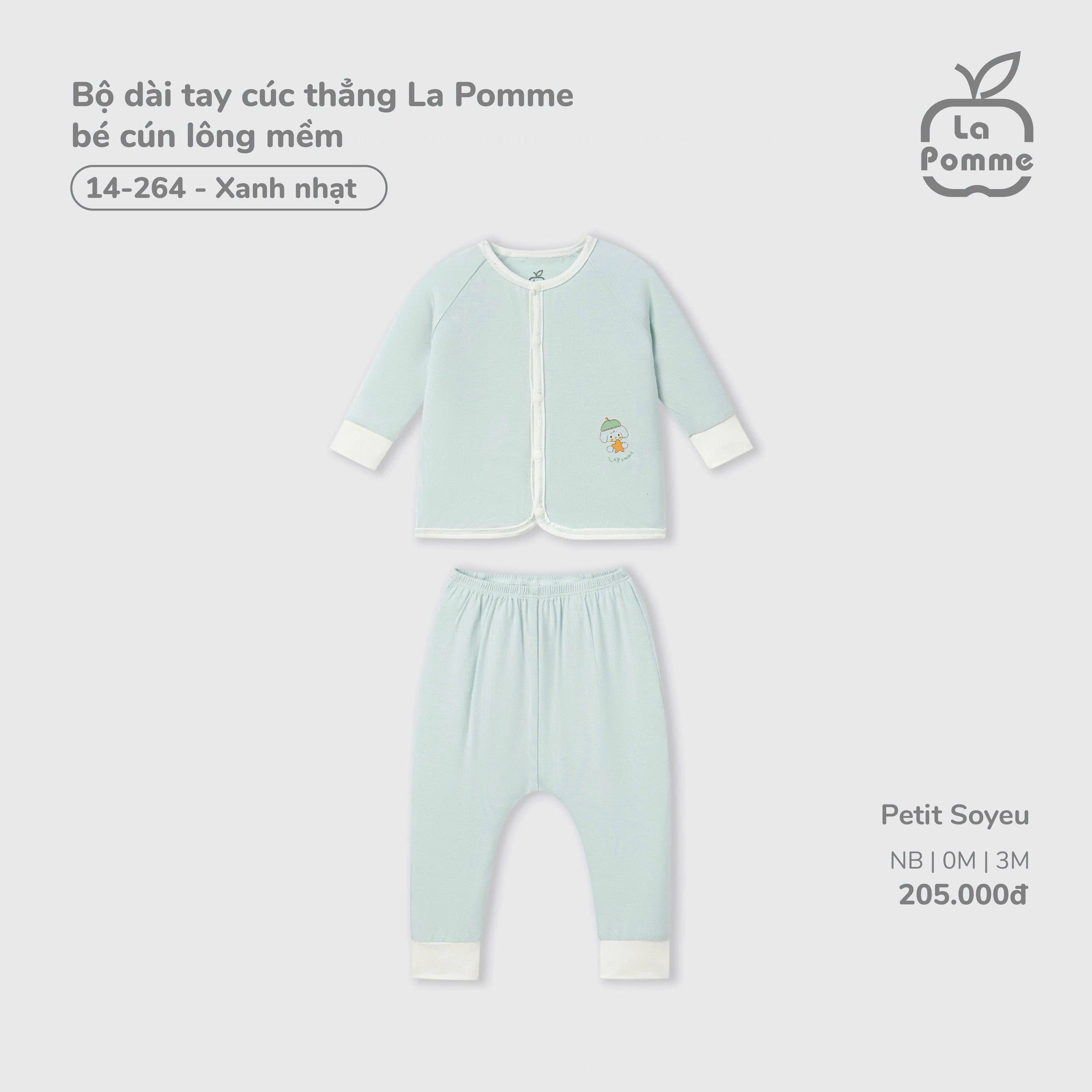 Bộ dài tay cúc thẳng La Pomme bé cún lông mềm