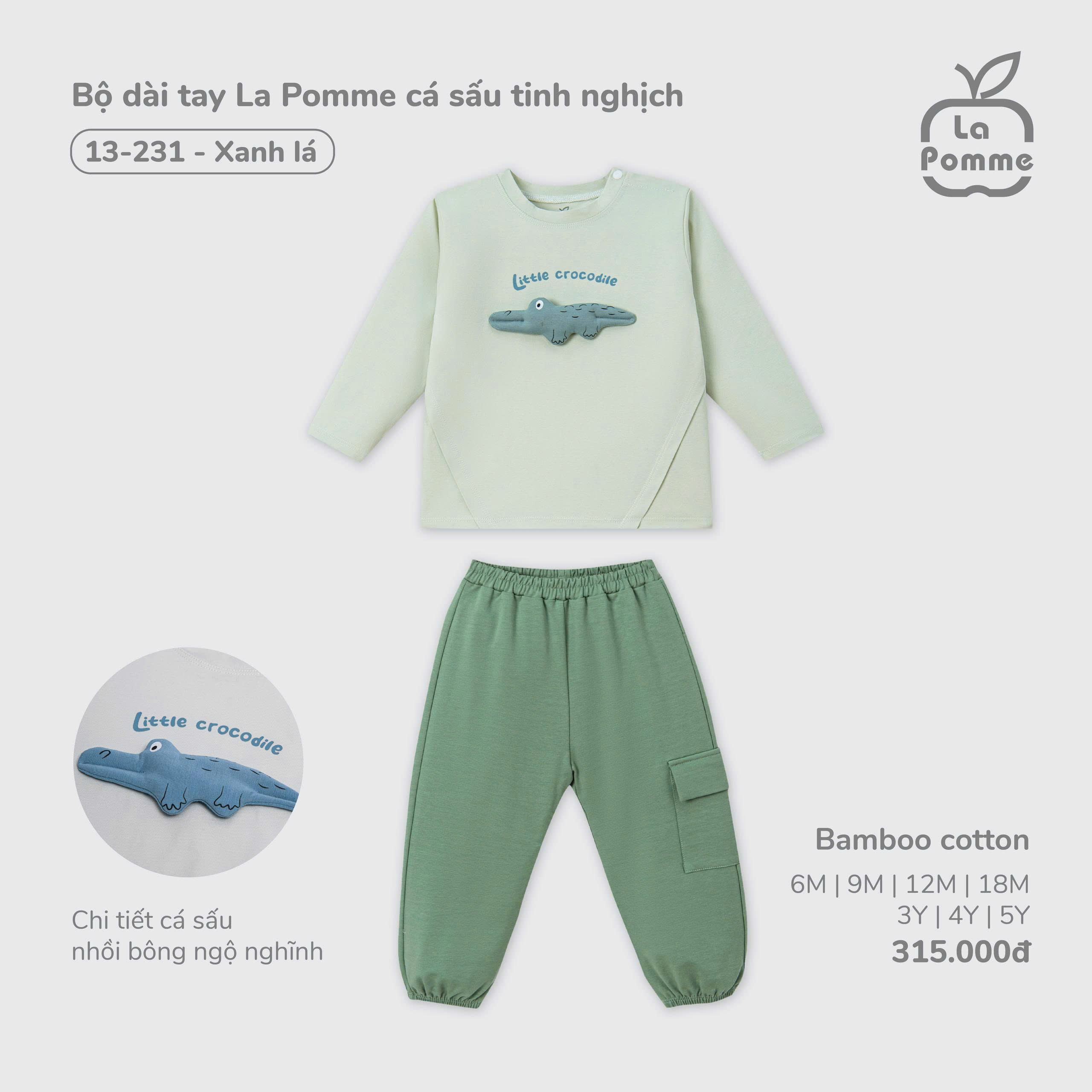 Bộ dài tay La Pomme cá sấu tinh nghịch