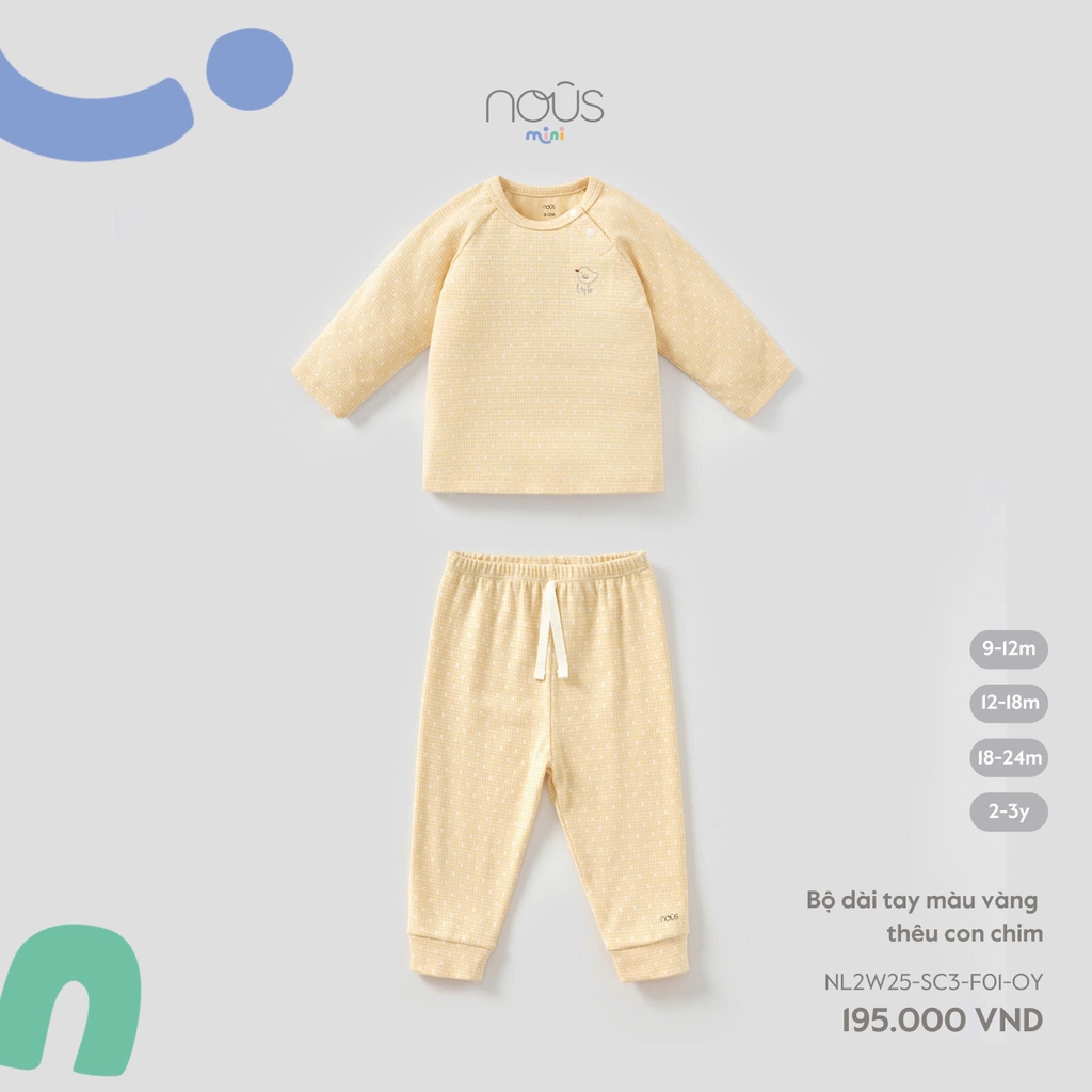 Bộ dài tay màu vàng thêu con chim
