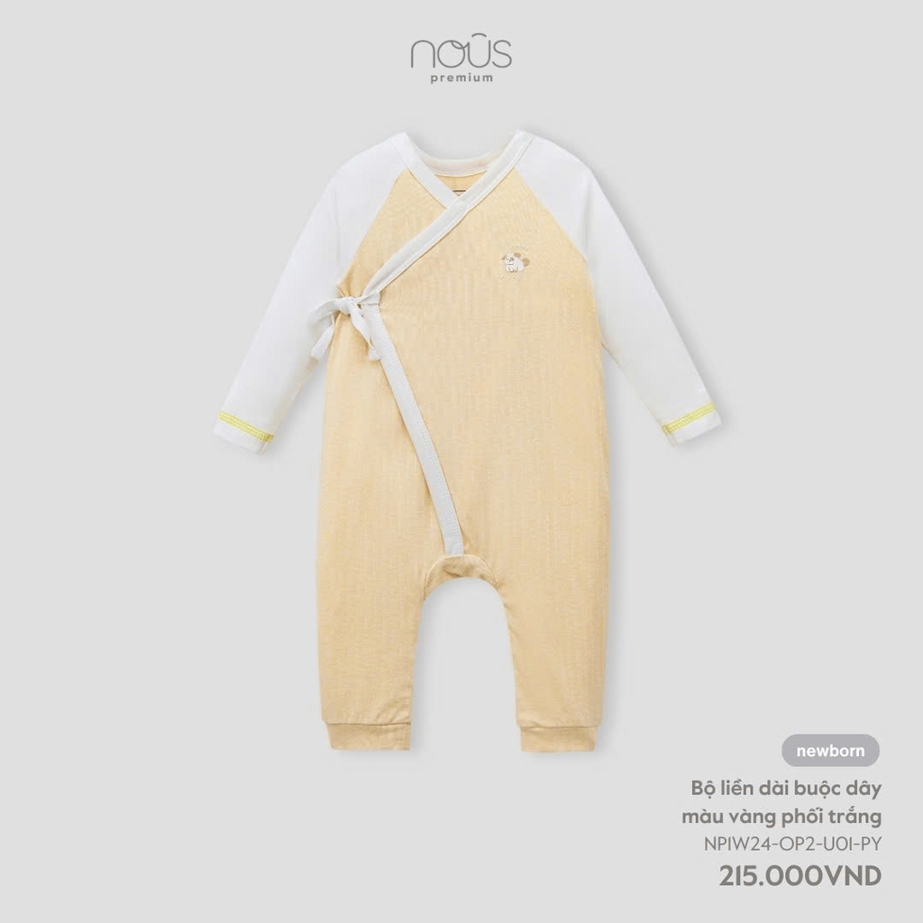 Bộ Liền Dài Buộc Dây Màu Vàng Phối Trắng NU1991
