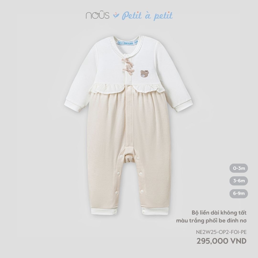 Bộ liền dài không tất màu trắng phối be đính nơ