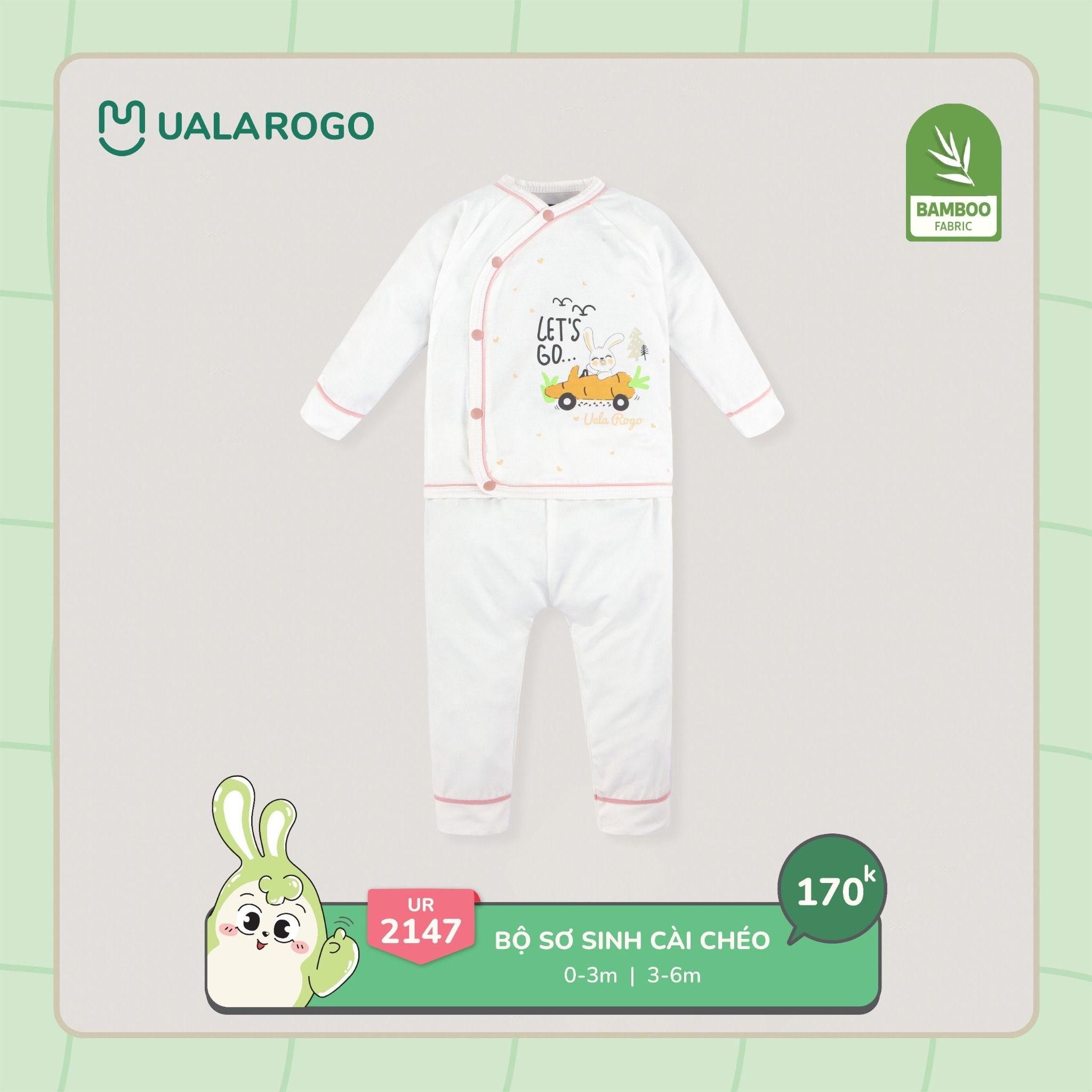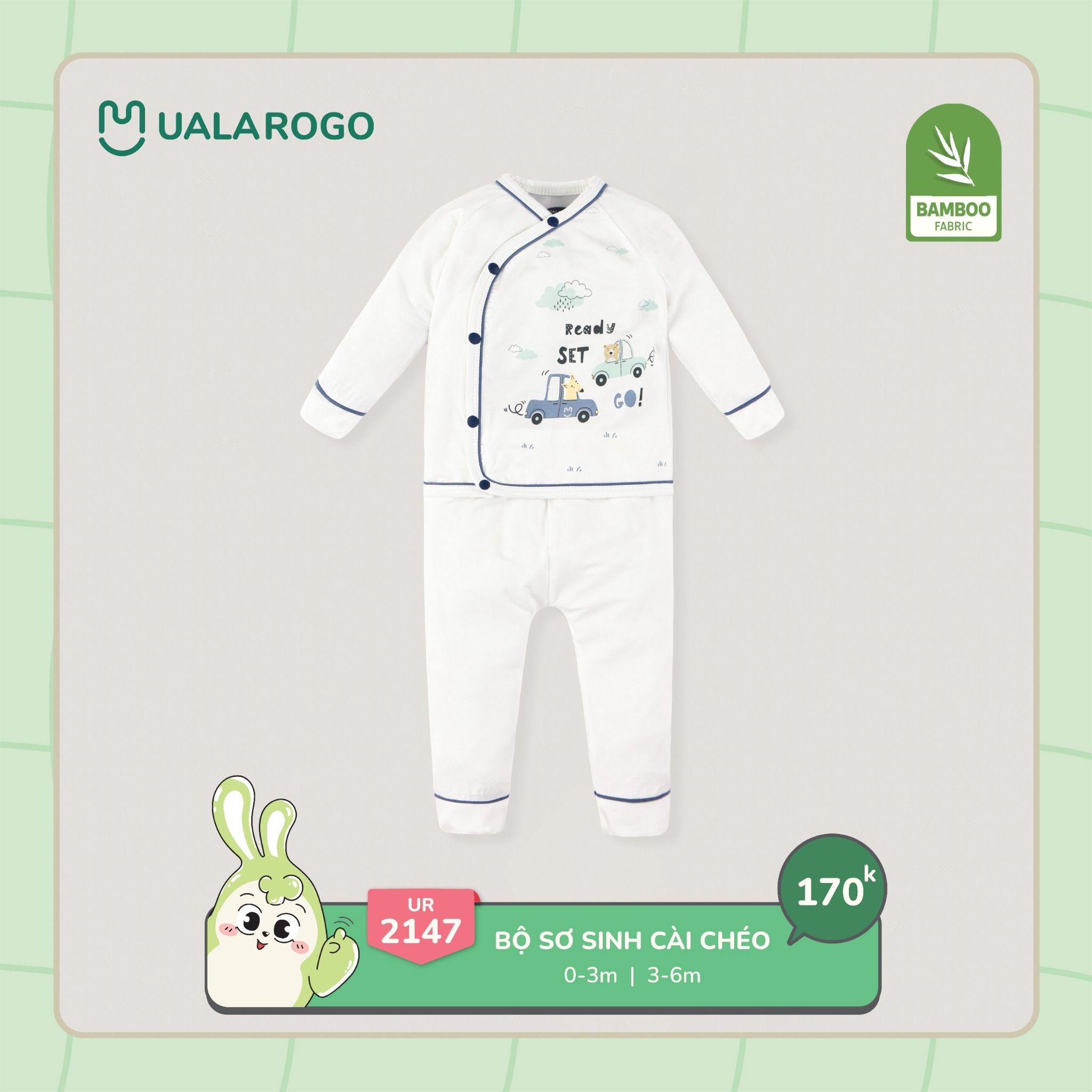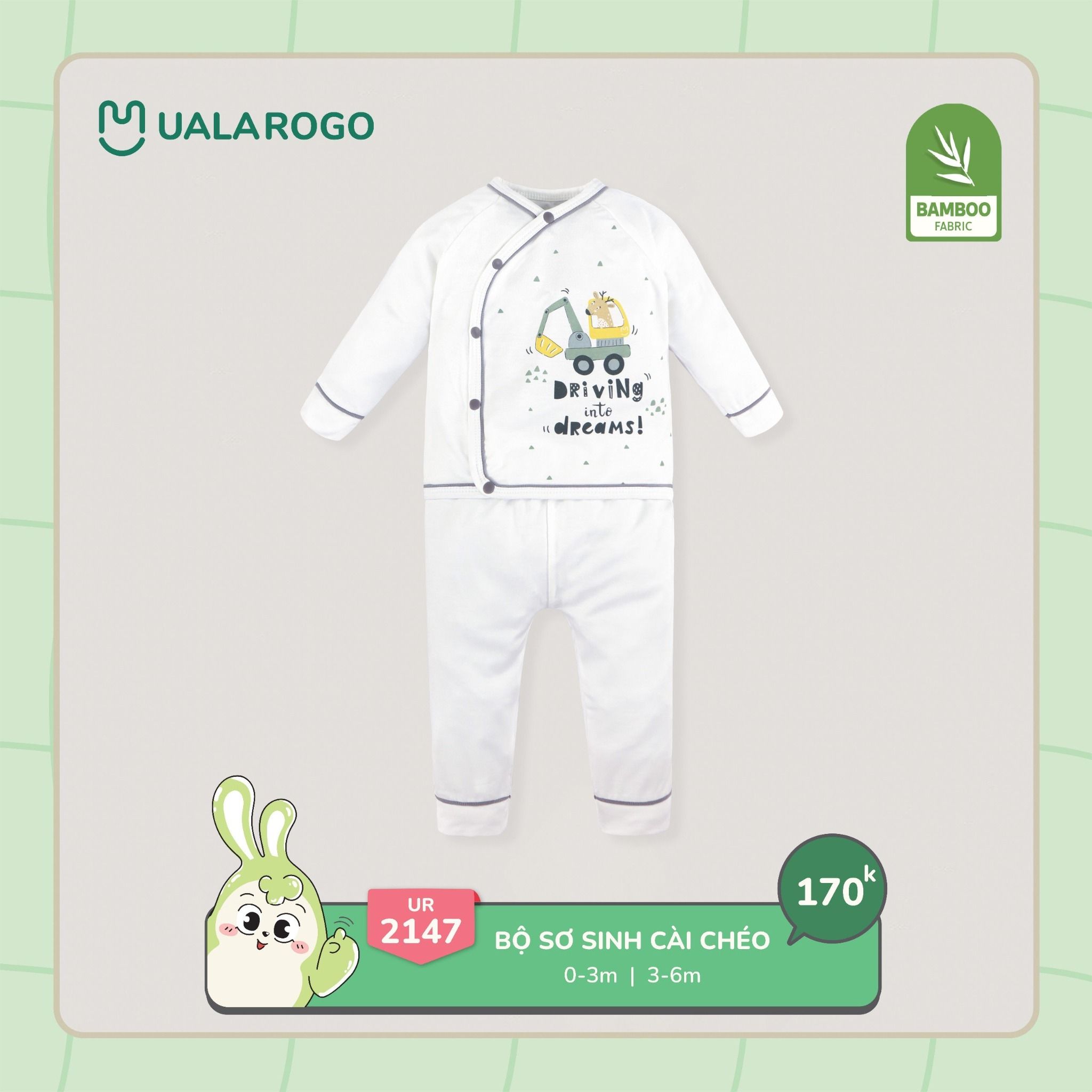 Bộ sơ sinh cài chéo bamboo UALA hoạ tiết xe cẩu UR2147
