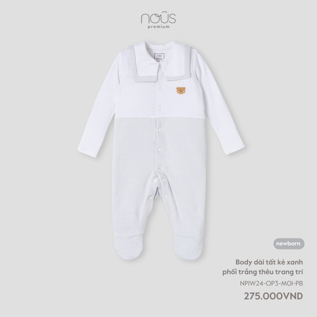 Body dài có tất kẻ xanh phối trắng thêu trang trí