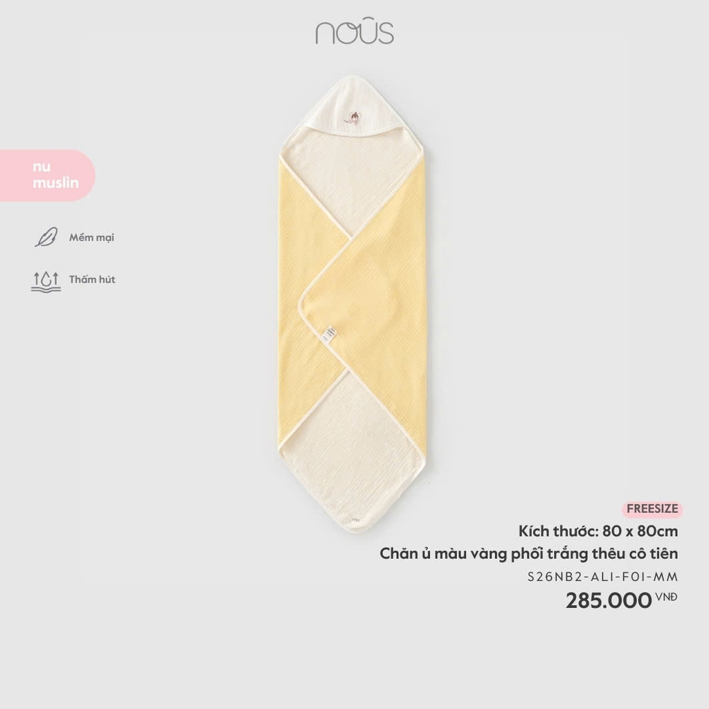 Chăn ủ màu vàng phối trắng thêu mèo