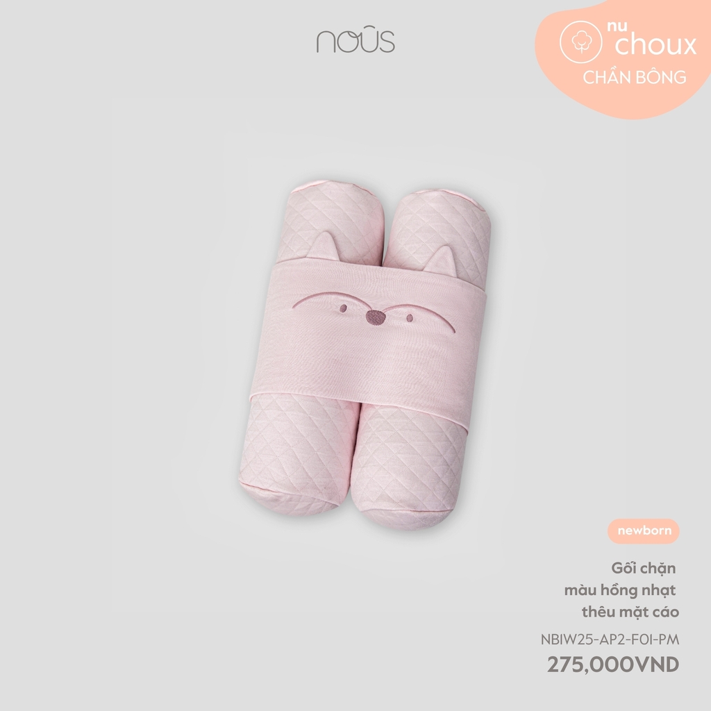 Gối chặn màu hồng nhạt thêu mặt cáo