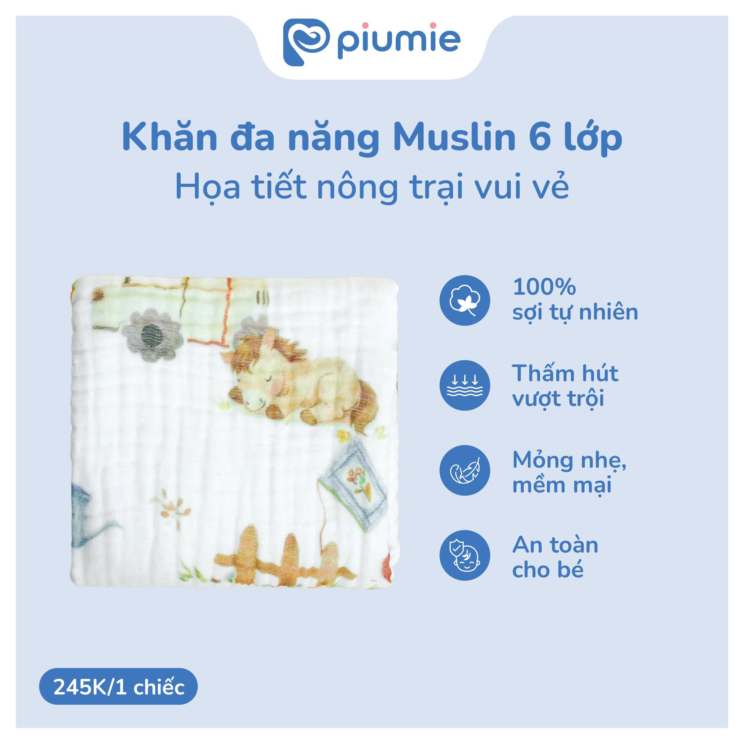 Khăn đa năng Muslin nhăn 6 lớp PiuCloud 90x100