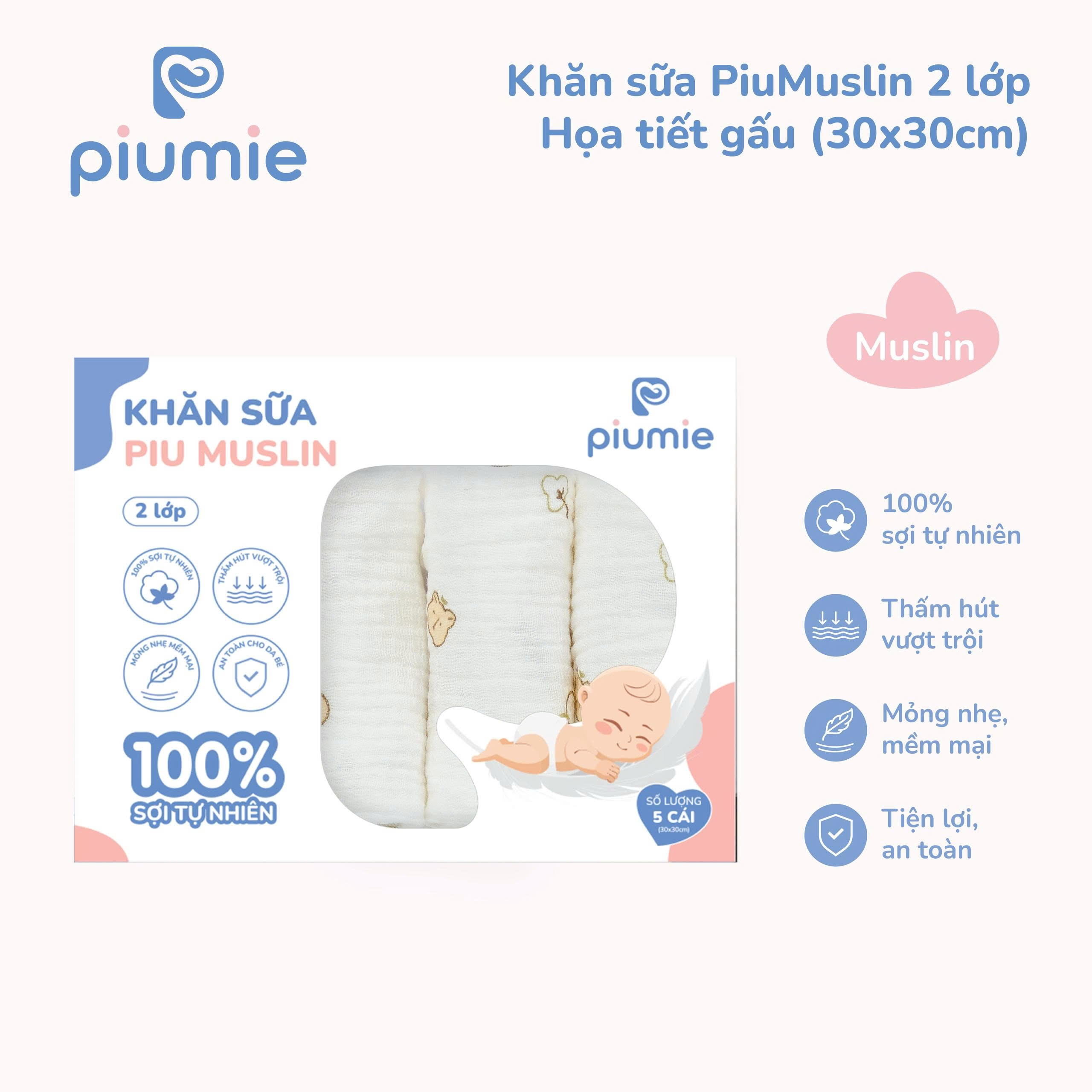 Khăn sữa muslin 2 lớp PiuMuslin 30x30