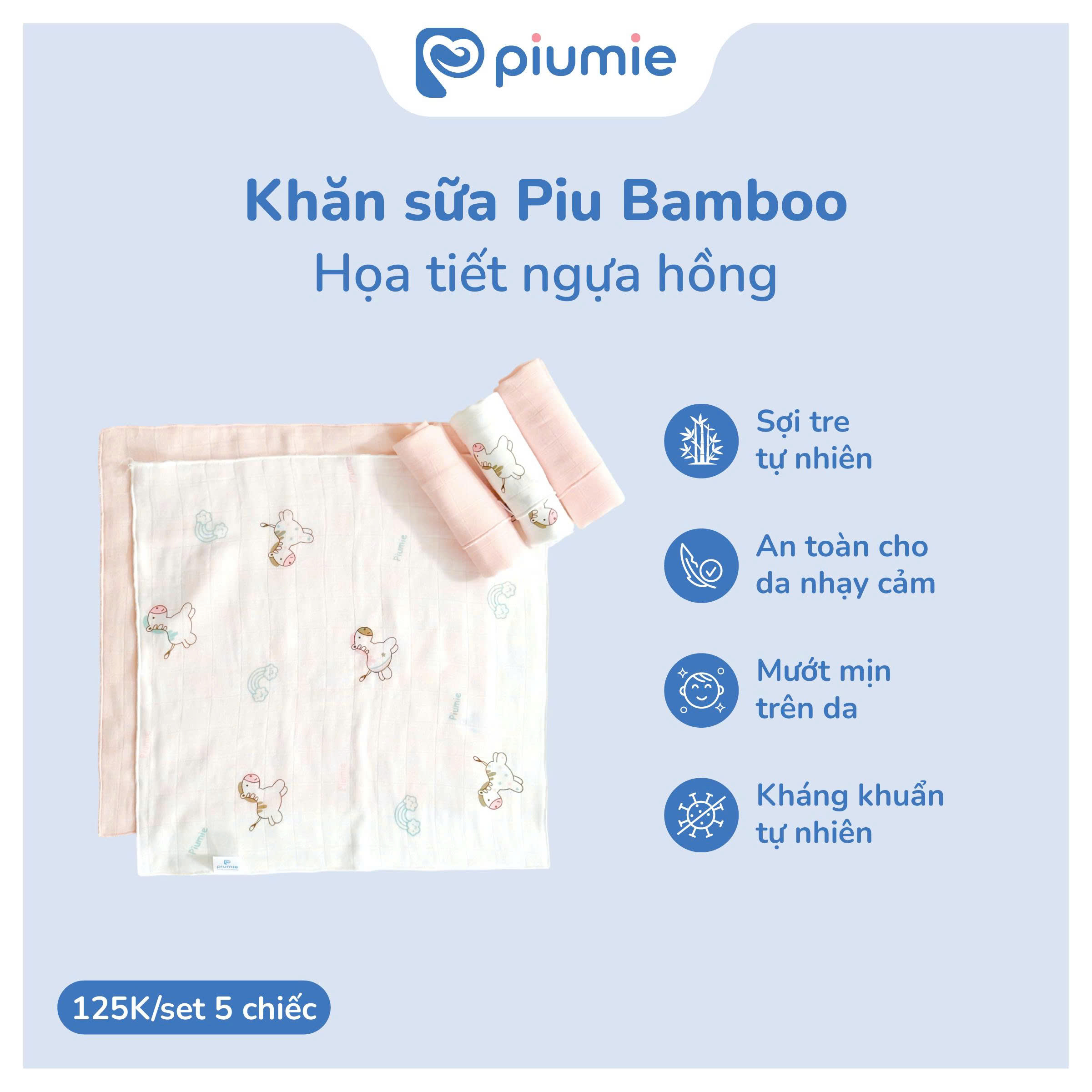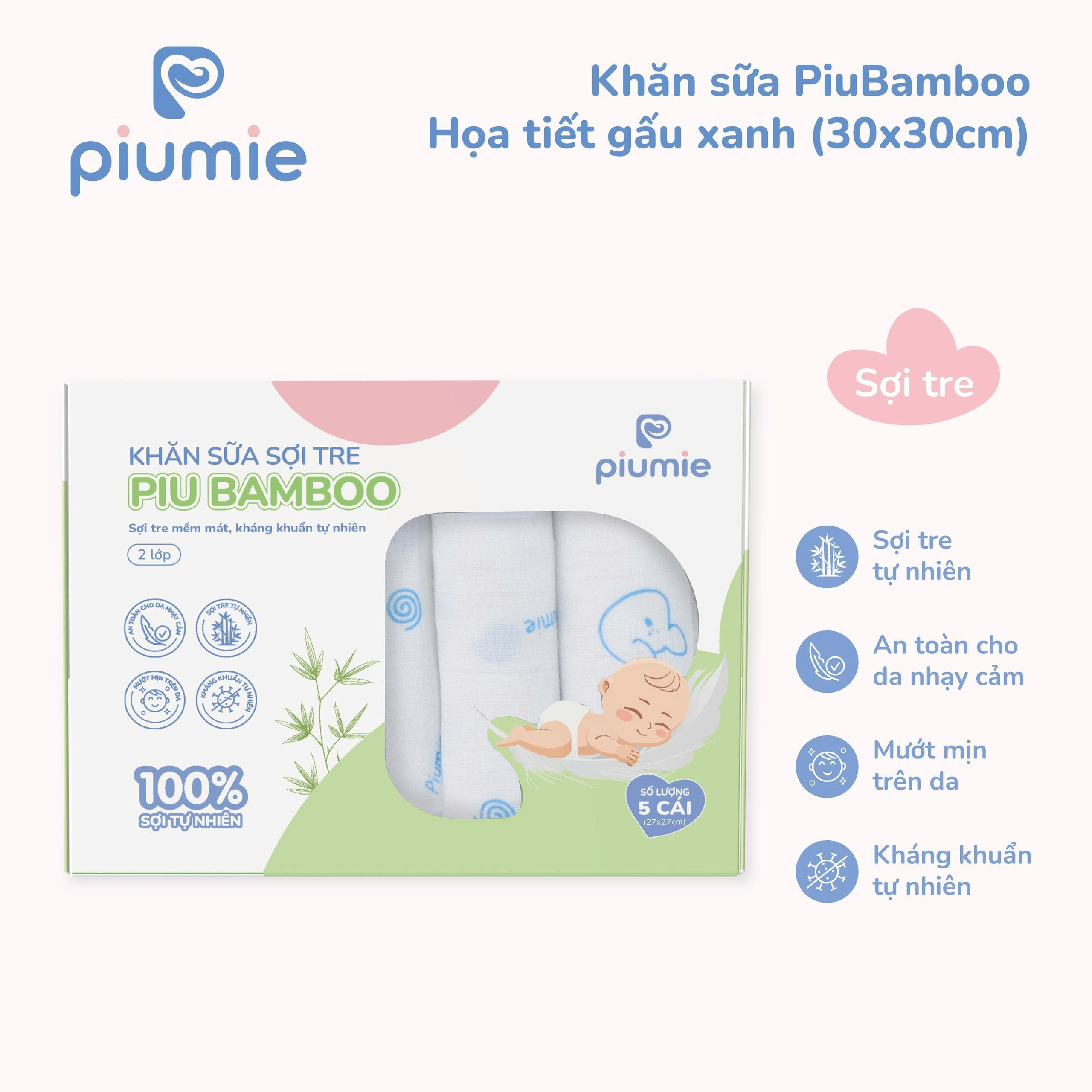 Khăn sữa sợi tre PiuBamboo 30x30