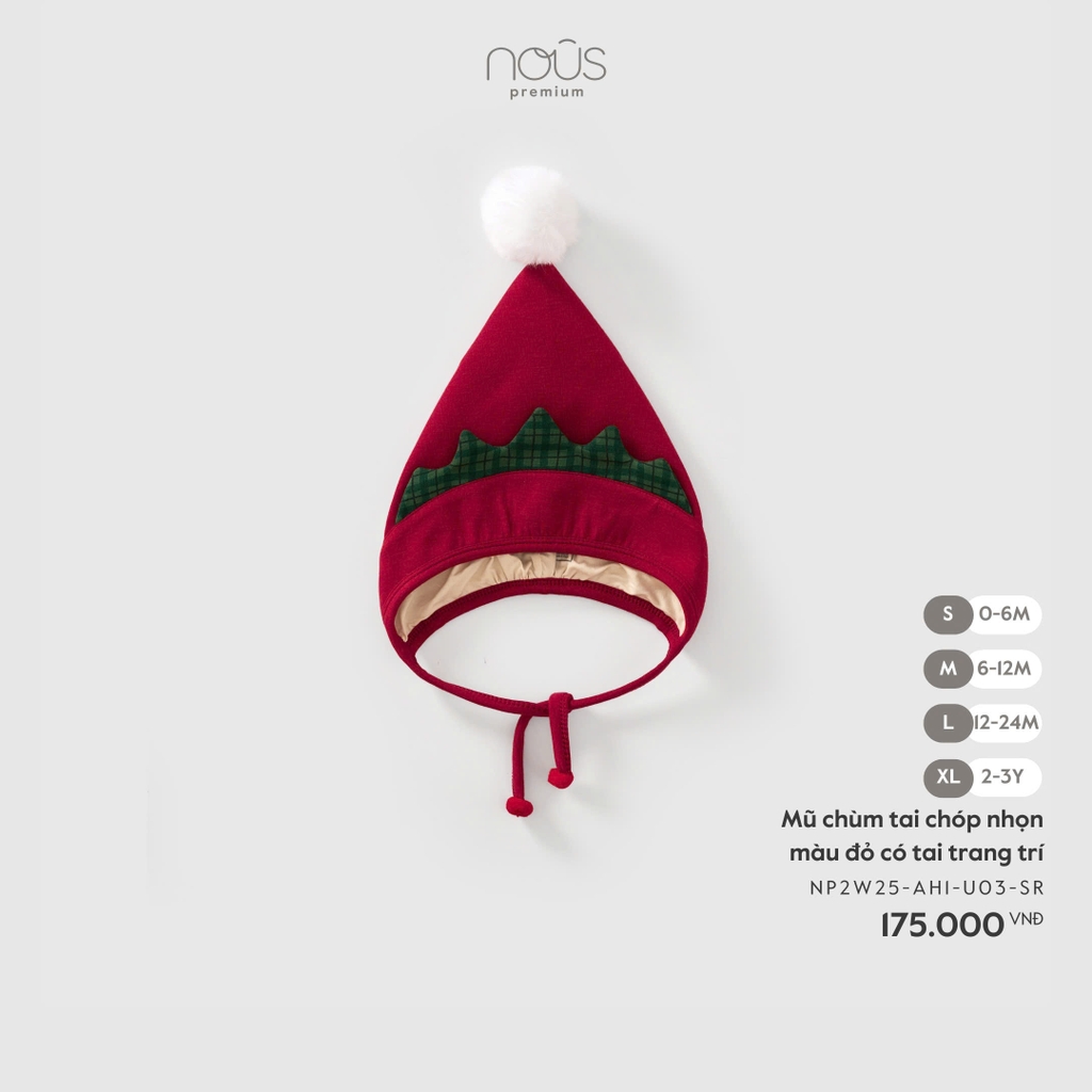Mũ chùm tai chóp nhọn màu đỏ có tai trang trí