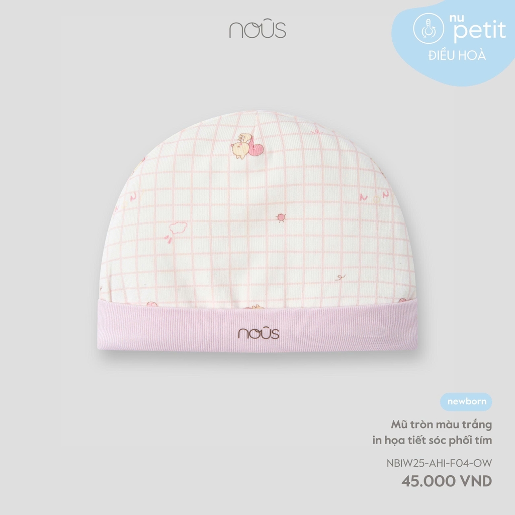 Mũ tròn màu trắng in họa tiết sóc phối tím