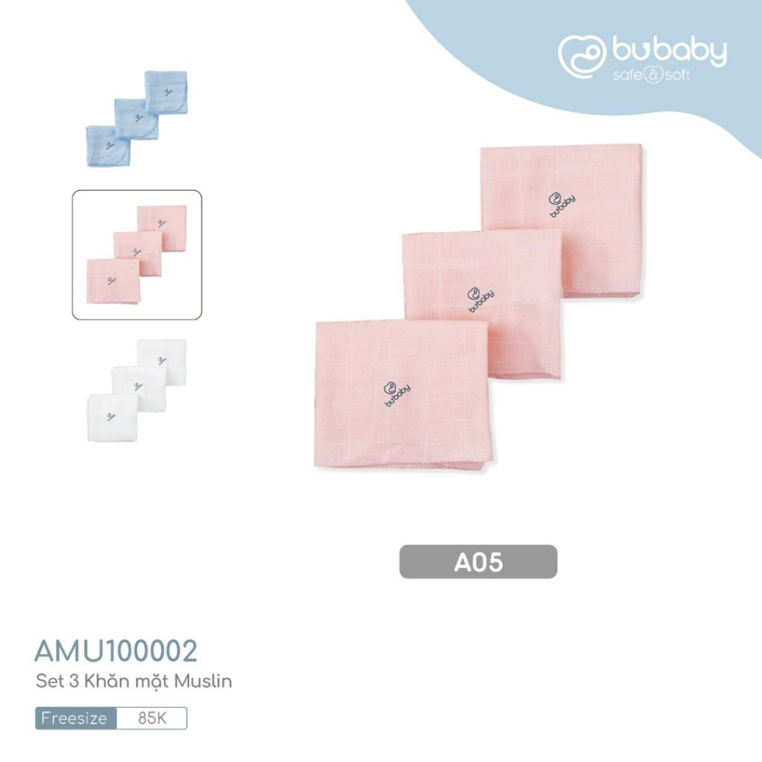 Set 3 Khăn Mặt Muslin Bubaby AMU100003
