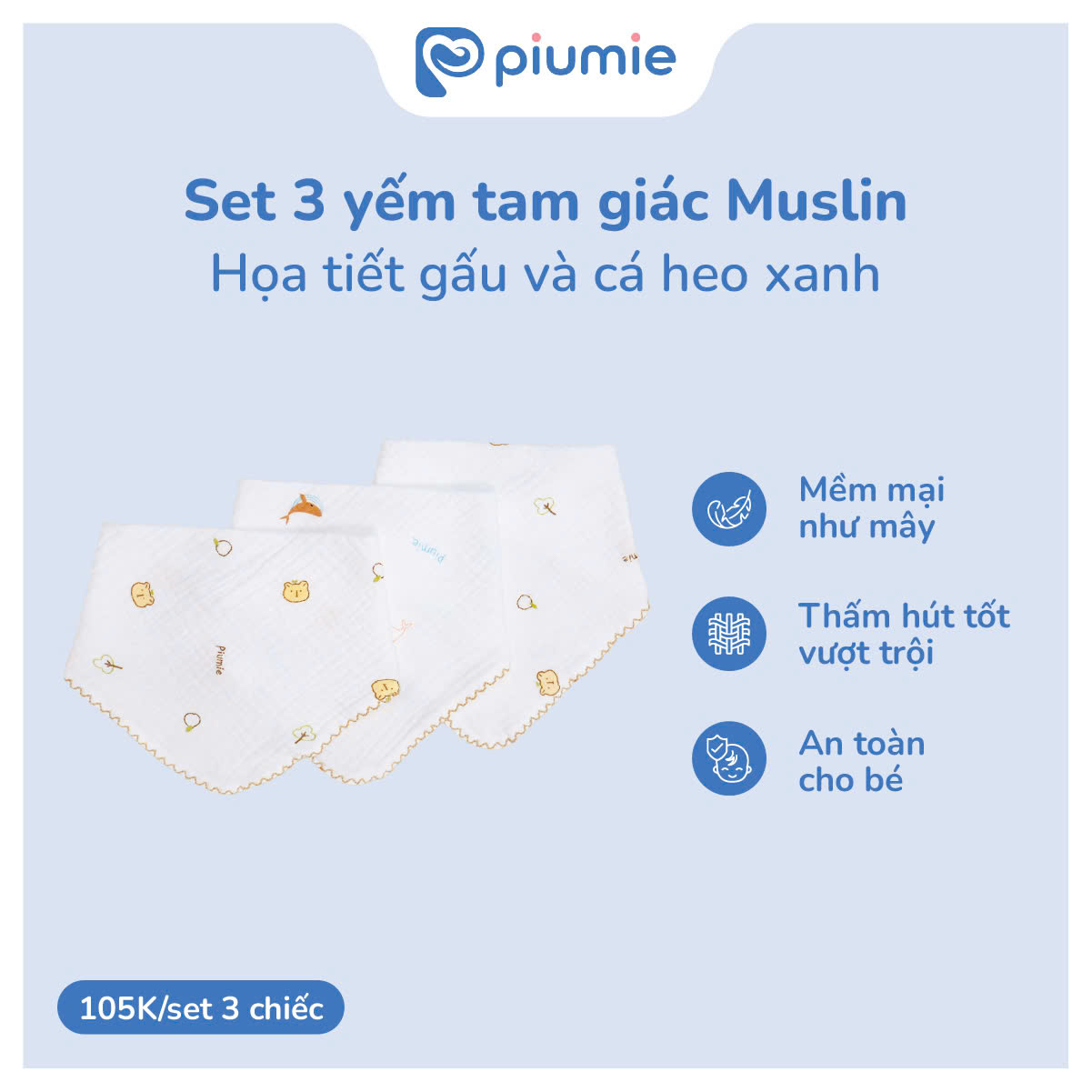 Set 3 yếm tam giác muslin