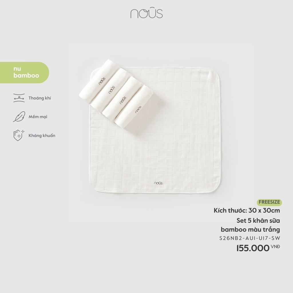 Set 5 khăn sữa bamboo màu trắng