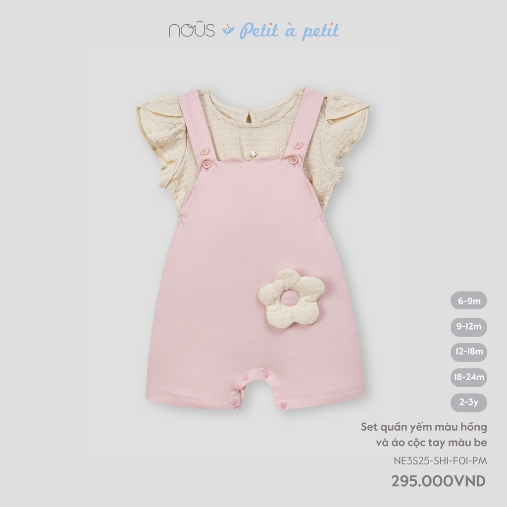 Set quần yếm màu hồng và áo cộc tay màu be